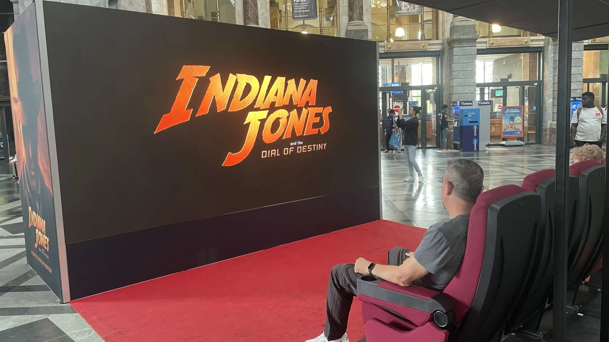Tren garı içerisinde yakında gösterime girecek son “İndiana Jones” filmi için küçük bir tanıtım yeri hazırlamışlar. Bu fragmanı izlerken pandemiden beri sinemaya gitmediğimizi düşündük. İndiana Jones’u sinemada izlemek gerekiyor kesinlikle.