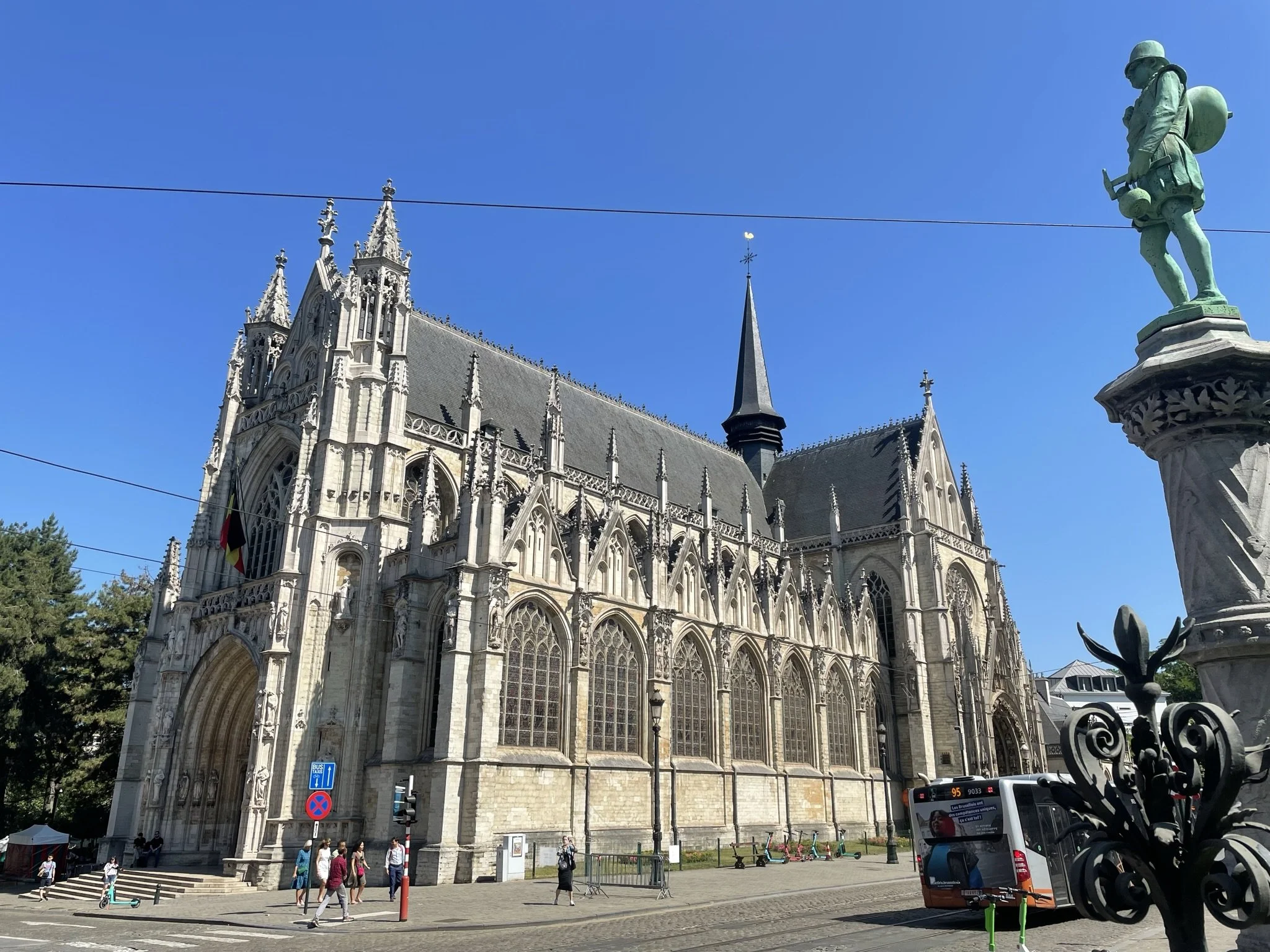 “Godfrey of Bouilon” heykelinin arkasındaki büyük katedral ve müzeleri dışarıdan görüyoruz. Müzeleri ve kapalı mekanları gezmek için havanın tatsız olduğu zamanları tercih ediyoruz.