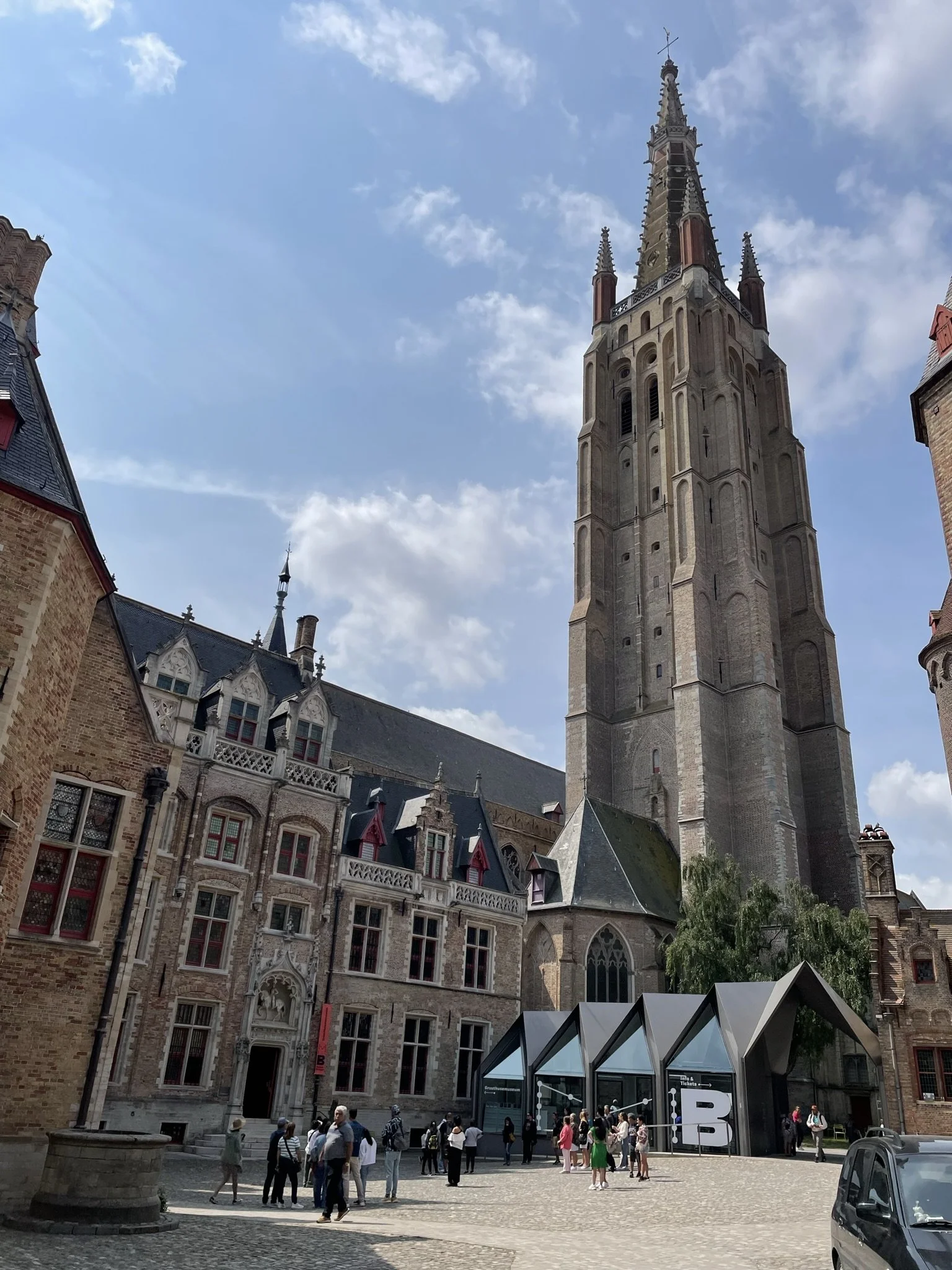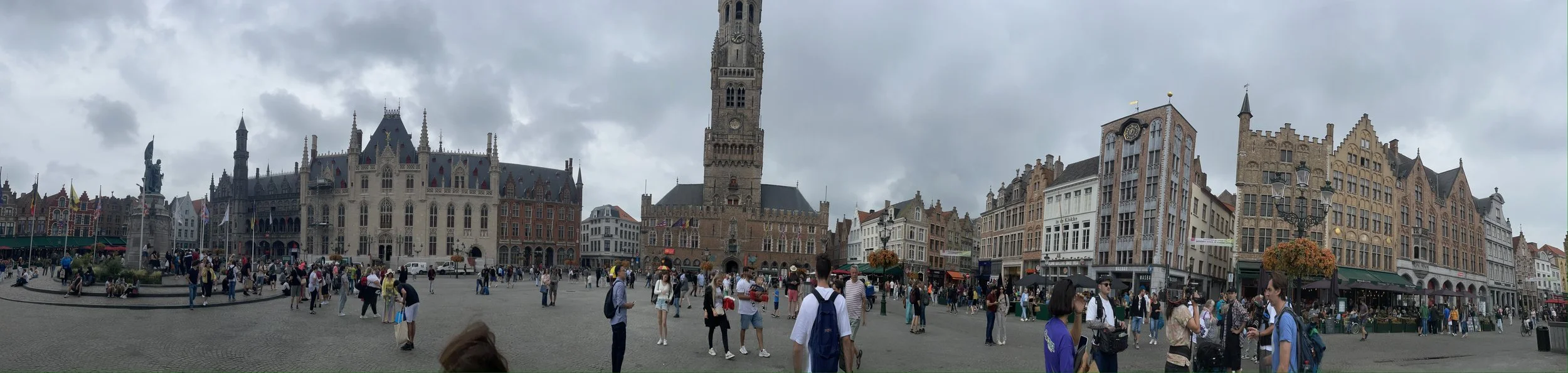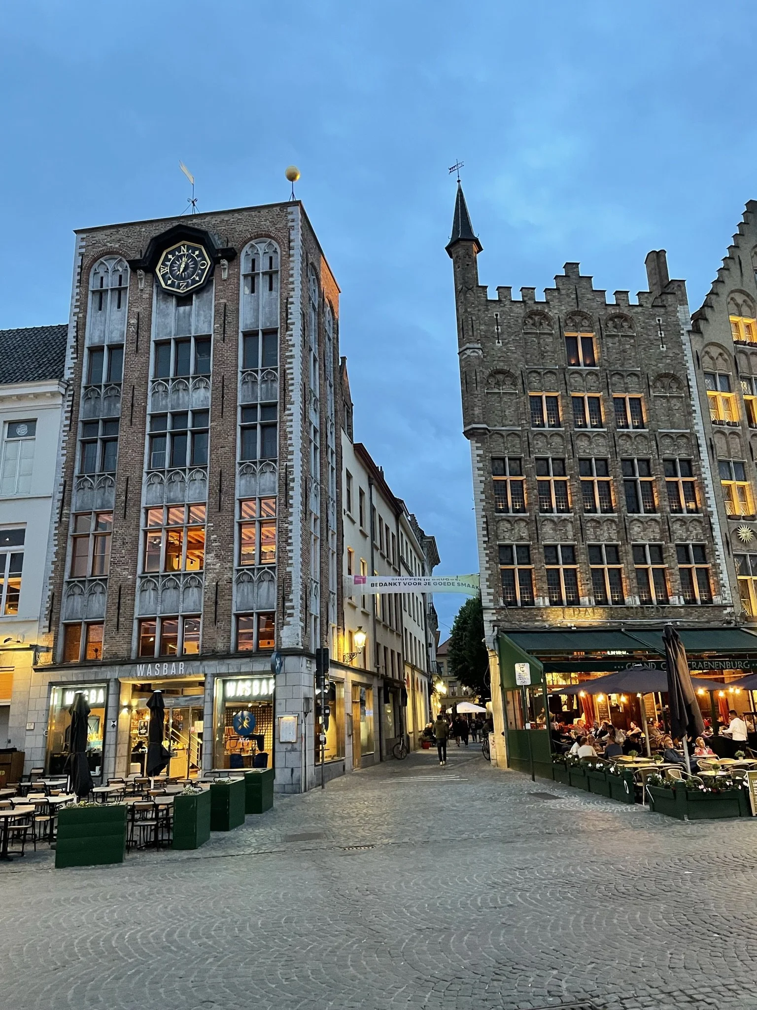 Dar bir sokak ağzından geniş alana çıkınca neo-gotik yapılar, devlet daireleri, saat kulesi, tipik Belçika evleri yer alıyor. Brugge’nin kalbine ulaşıyoruz. Kocaman bir meydan bizi karşılıyor