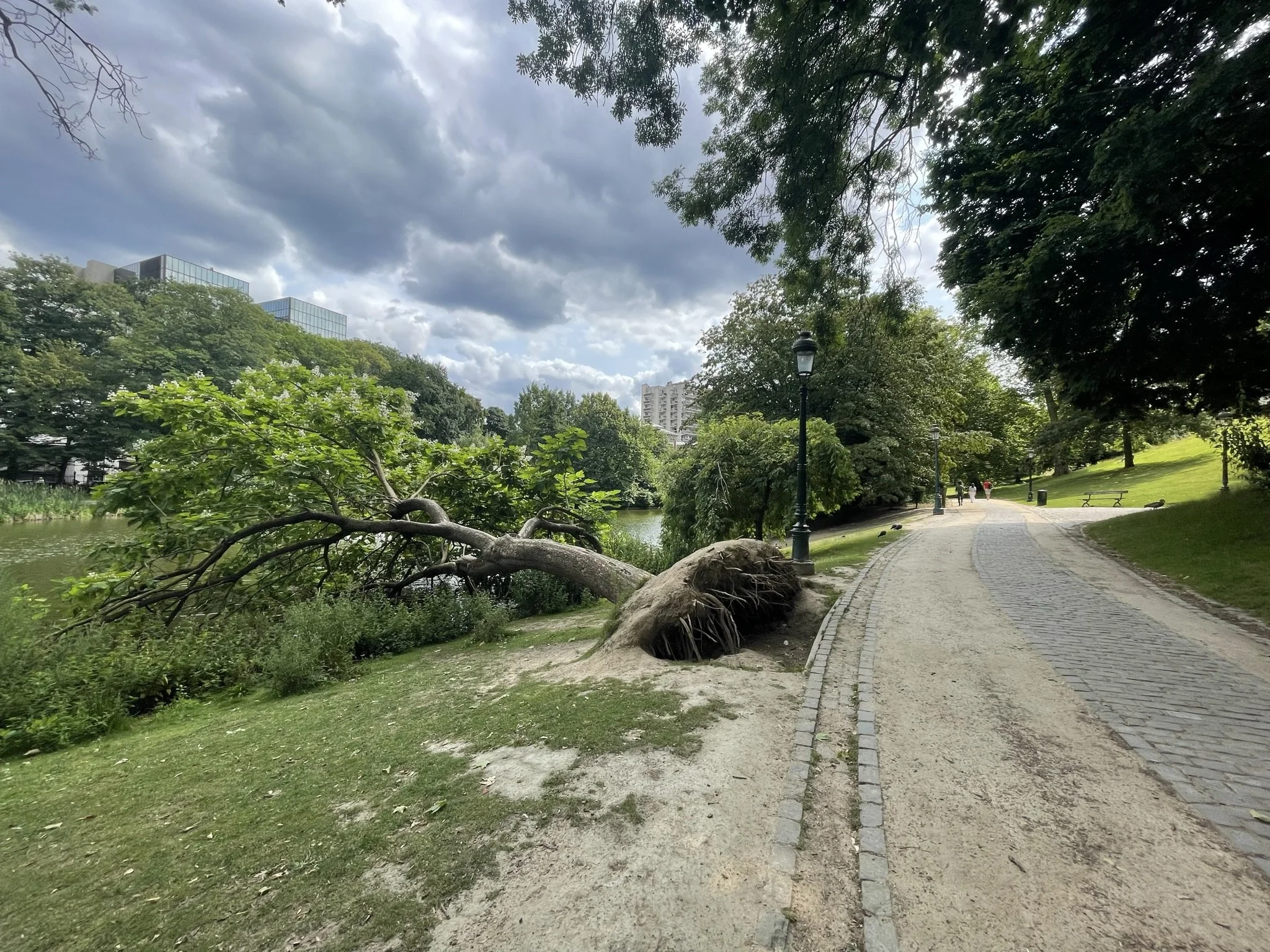 Koşucular zaman zaman sağımızdan solumuzdan bizi geçiyor. Onların koşmalarına inat biz yürümeye devam. Parc de Bruxelles’e kadar yürüyoruz. Çevreyi izlerken bisikletleri ile çocuklarını parka gezmeye getirenleri izliyoruz. Ağaçların altında yürüyerek bir süre güneşten korunuyoruz.