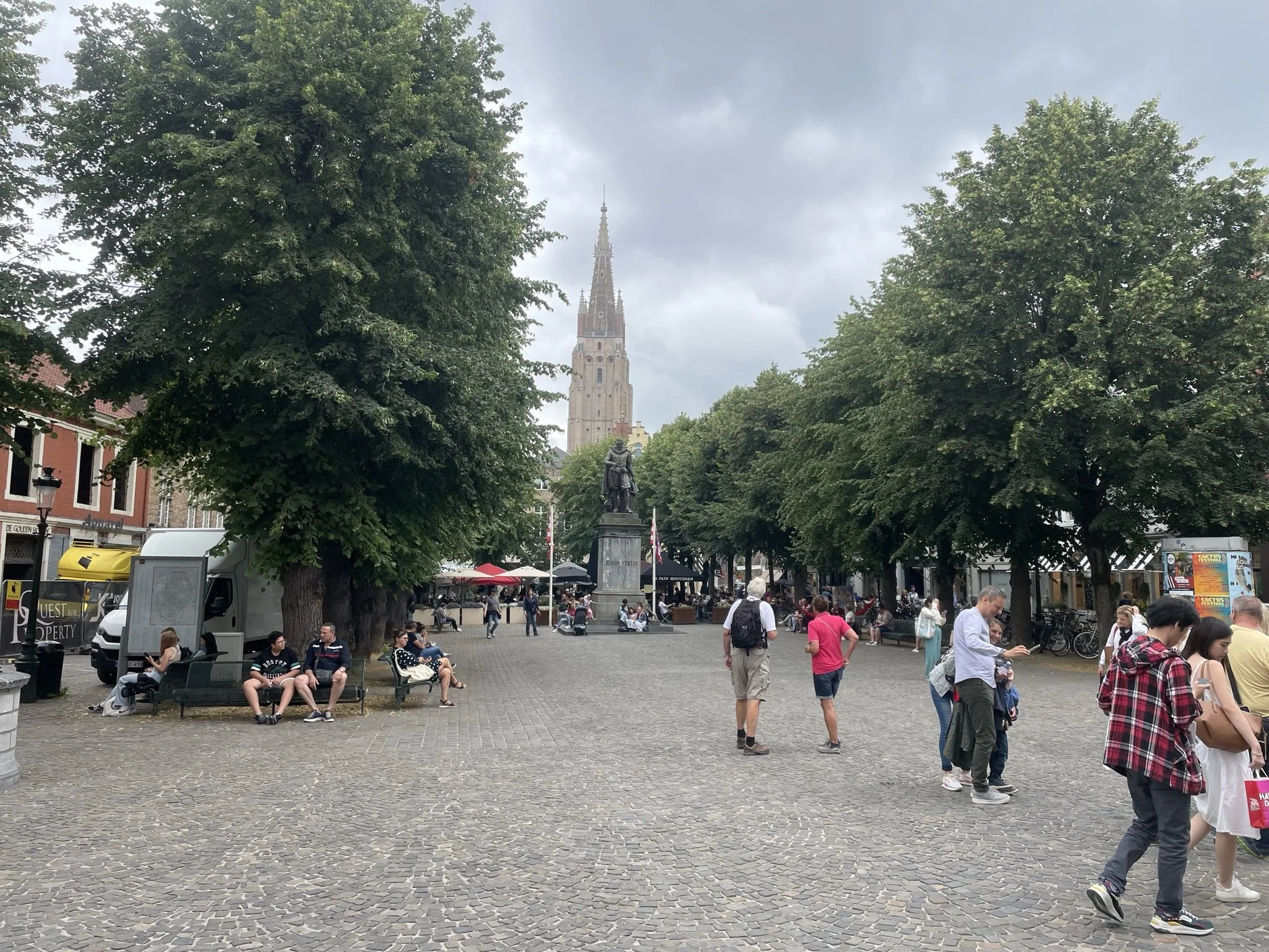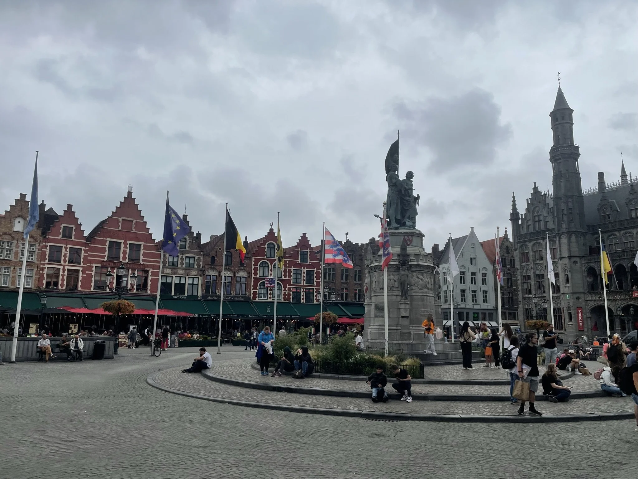 Ortada 14. yüzyıl Fransız-Flaman savaşının halk liderinin olduğu söylenen heykel var, ancak her kaynakta farklı bilgiler var. Kafeler, restoranlar ve hediyelik eşya dükkanları da olmazsa olmaz tabii. Bir de at arabalarının ve tur arabalarının başlangıç durağı olduğunu anlıyoruz.