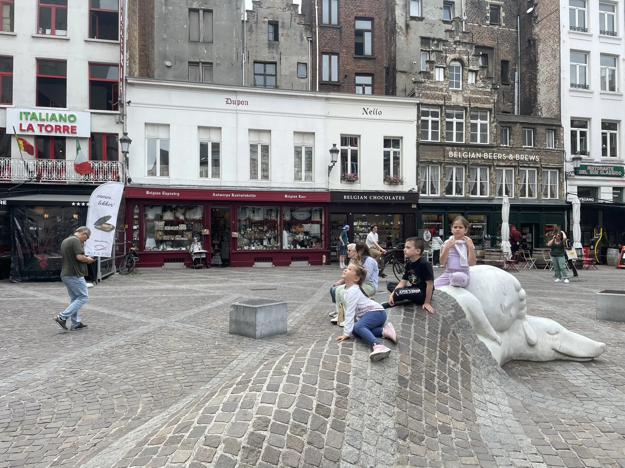 Hemen sonra meydan da sizi Standbeeld Pieter Paul Rubens’in heykeli karşılıyor. Hediyelik yerel mağazalar, restoranlar, kafeler ile yine tipi bir Avrupa kenti turistik bölgesine bir kez daha giriş yapıyoruz.