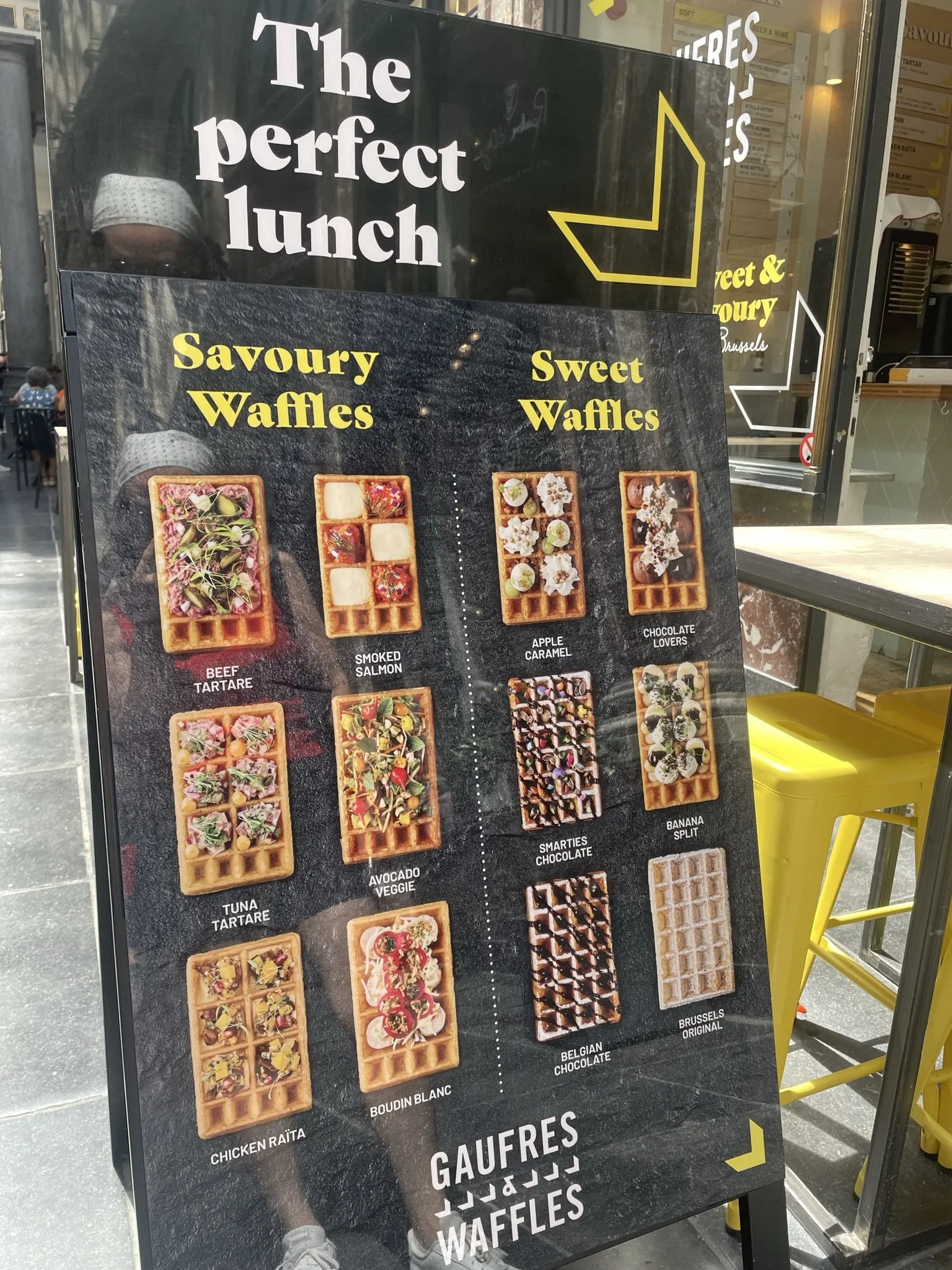 Artık meşhur waffle’ın tadına bakma zamanı. Üstelik tatlı değil, tuzlu waffle ile bir öğle yemeği… (fiyatlar 4-5 euro civarı)