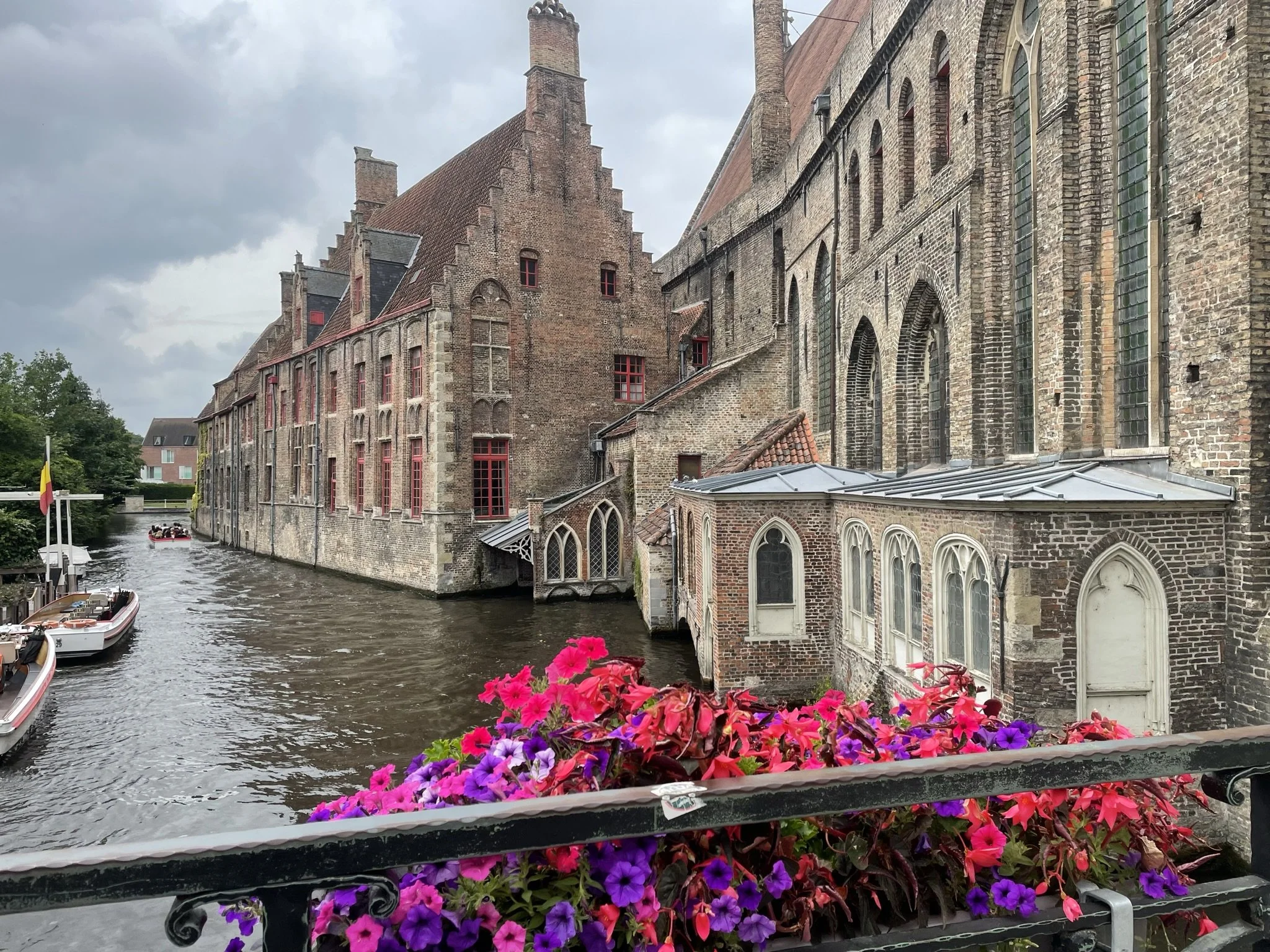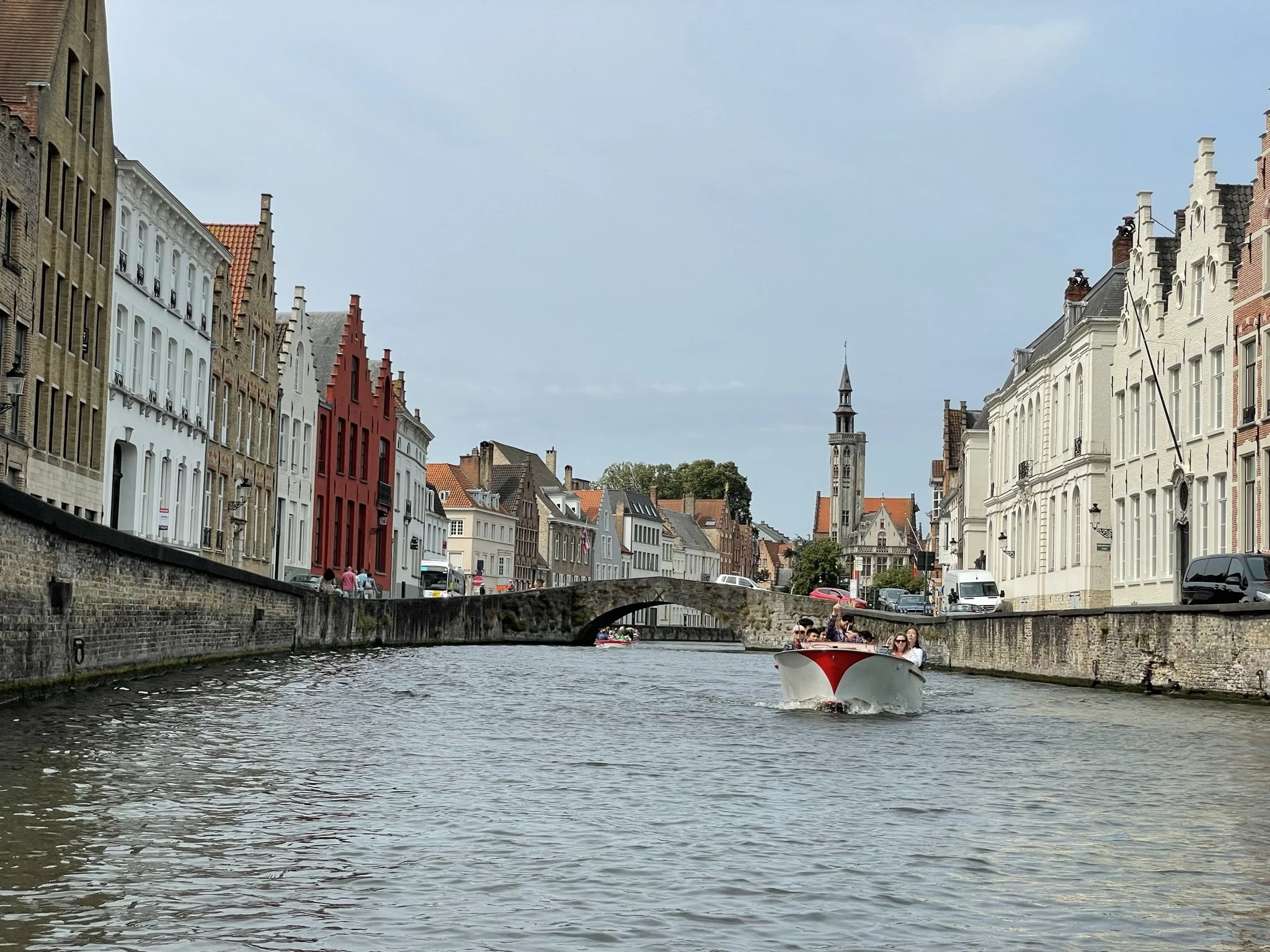 Brugge’a kuzeyin Venedik’i diyorlarmış. Kanalların üstündeki köprülerden geçerken altımızdan gezi tekneleri geçiyor.