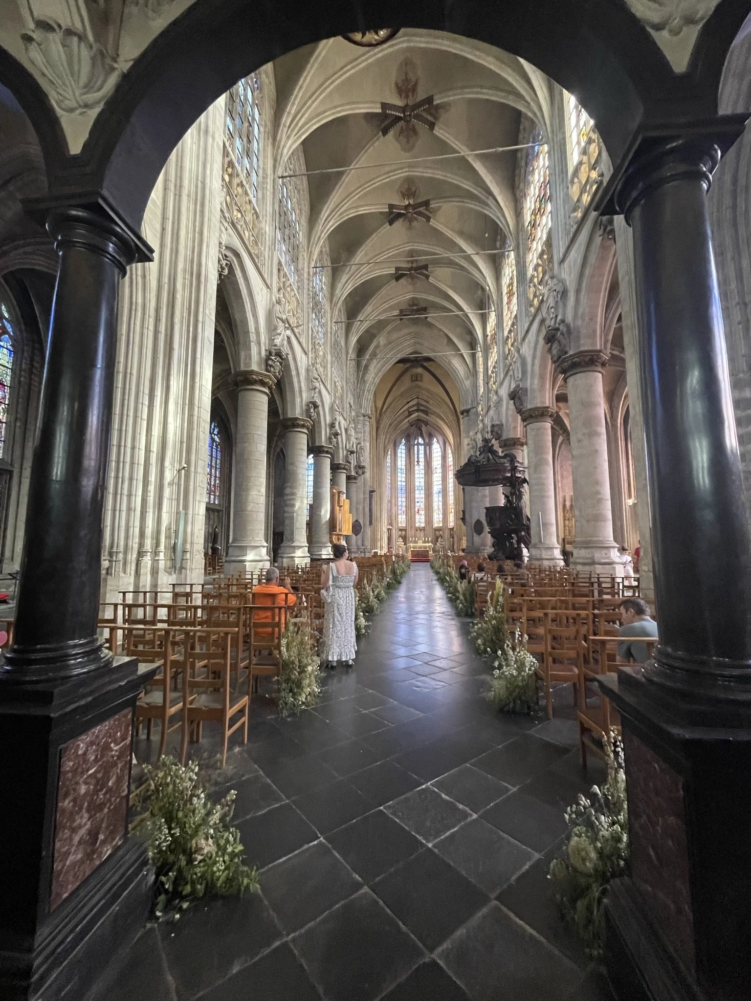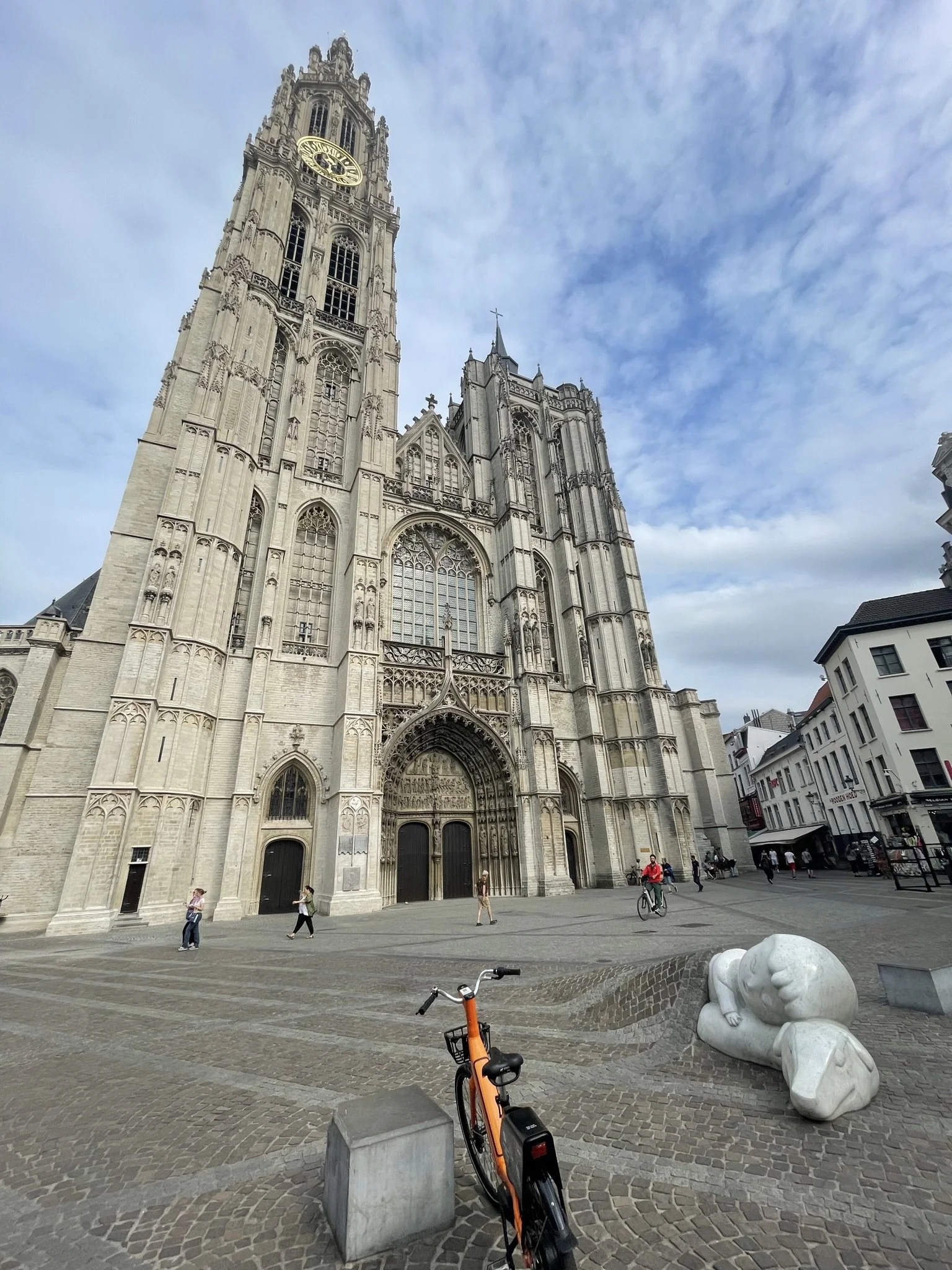 Meydanın yakınında, “A Dog of Flanders” Britanyalı yazar Ouida tarafından 1872 yılında yayımlanan çocuk roman kahramanlarının bir heykeli arkasında ihtişamlı Meryem Ana Katedrali.