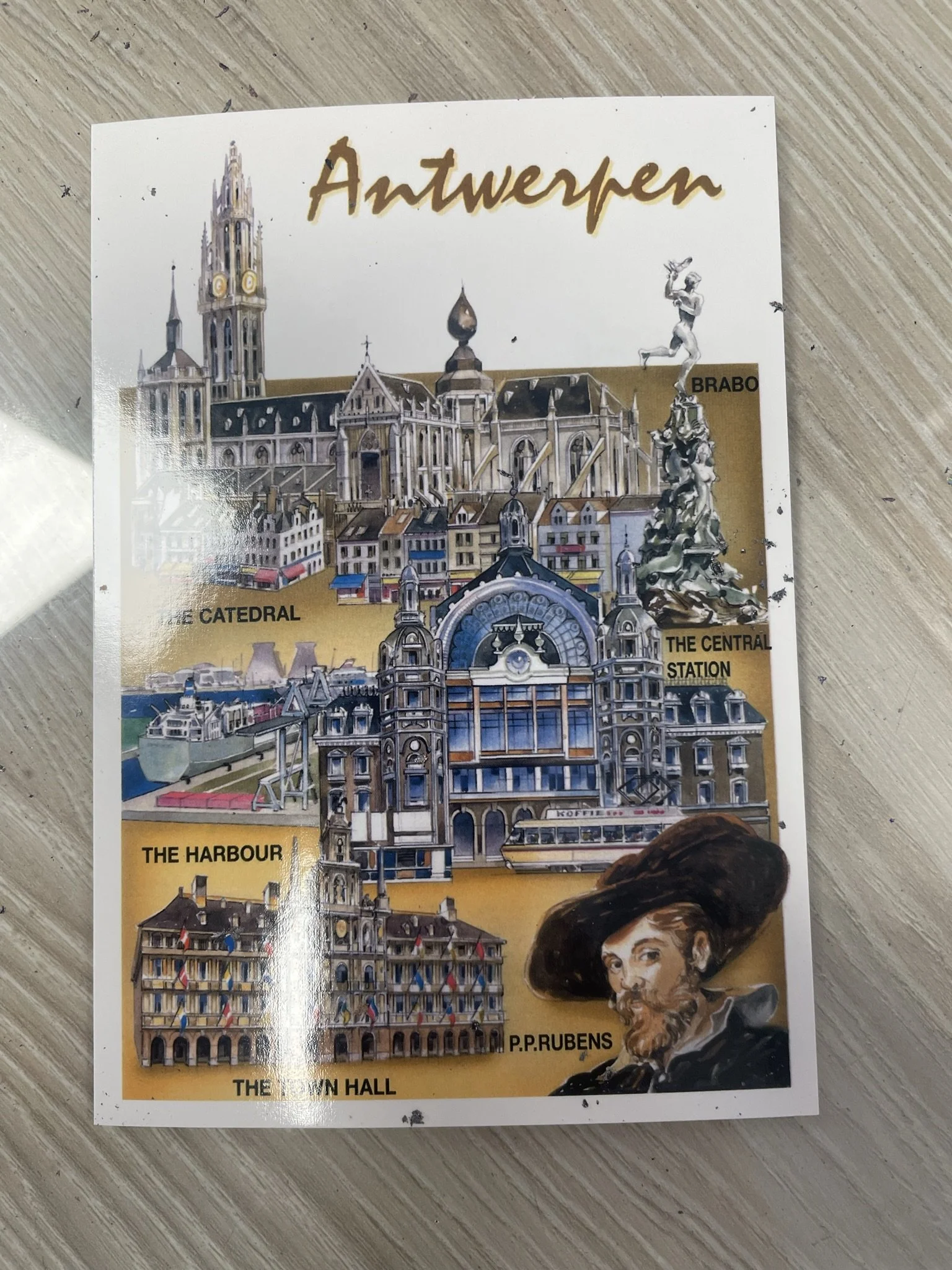 Brüksel’den aldığımız kartpostalı henüz postalayamadık. Meydandan Anvers için de kart aldık. Hemen yakında bir posta kutusu ve pul satan yerde kartımızı yazdık. Arda ve Lisa’ya postaladık. Bizim neslin bildiği bu kartpostalı artık gençler bilmiyor diye düşünürdük ama sürdürmek için bir şey yapmazdık.