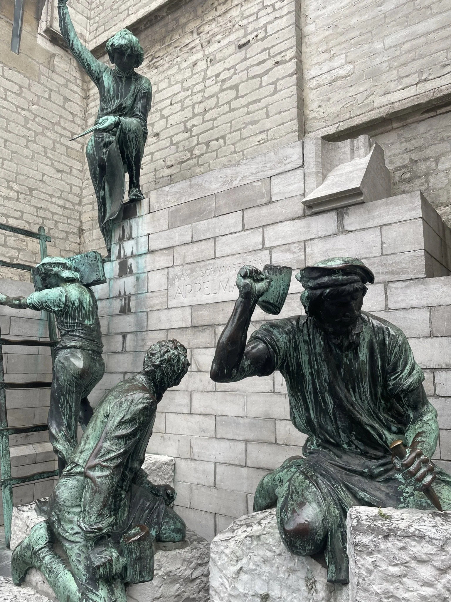 Meryem Ana katedrali yanında ise benzerine rastlanmayan başka bir heykeller grubu var. Bu, Antwerp şehir merkezindeki Antwerp Katedrali'nin yanında ilginç bir bronz heykel koleksiyonu. Heykel grubu, Belçikalı heykeltraş Jef Lambeaux'nun (1935) eseri ve merhum babası Jans Appelmans tarafından başlatılan Katedral'in inşaatını bitiren taş ustalarını, inşaatçıları ve mimar Pieter Appelmans'ı tasvir ediyor (www.tripadvisor.com) Bir cenaze töreni nedeniyle katedral ziyaretçilere kapalı. Katedralin bir sokak ilerisi, “Grote Markt”.