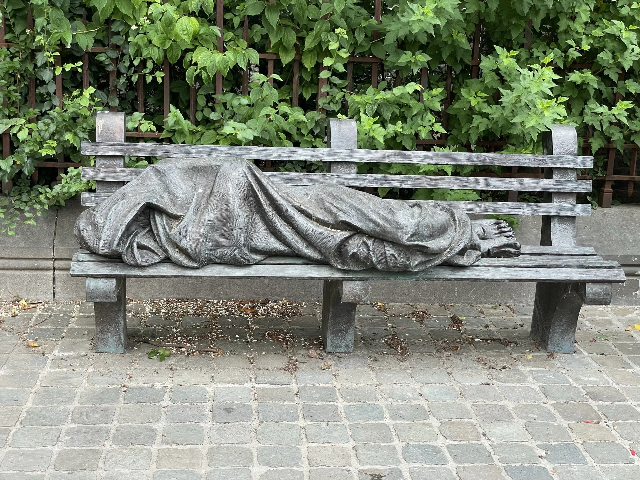 Basit bir parkın ne özelliği olabilir diye düşünebilirsiniz. İzmir’de evimiz Susuzdede Park’ına bakıyor. Bizim parkımız ile ister istemez karşılaştırıyoruz tabii. Bu tarihi Park’ın bakımlı ve temiz halini kıskanıyoruz. Birbirimizi tatildeyiz moralimizi bozmayalım diye uyarıp tabana kuvvet “Jardin Du Mont Des Arts“a varıyoruz. Havanın 31 derece olması normal mi? Gelmeden önce özellikle 1 hafta kala hava durumunu daha sık takip ediyoruz, bekliyorduk bu sıcağı… Mola zamanı. Soğuk içeceklerimiz ile serinlemeye çalışırken bahçeyi ve arkasında şehir siluetine bakıp gideceğimiz rotaya bakıyoruz. Bir kez daha telefonun harita uygulamasından kendimiz güncelliyoruz. Benim yön bulma duygum, oryantasyonum iyidir. Ayşegül ise nerede ne yenir, nerelerde, ne gizli köşeler var konularında iyidir. O mekanları bana söyledikçe ben de rotayı hazırlıyorum gezmek istediğimiz.