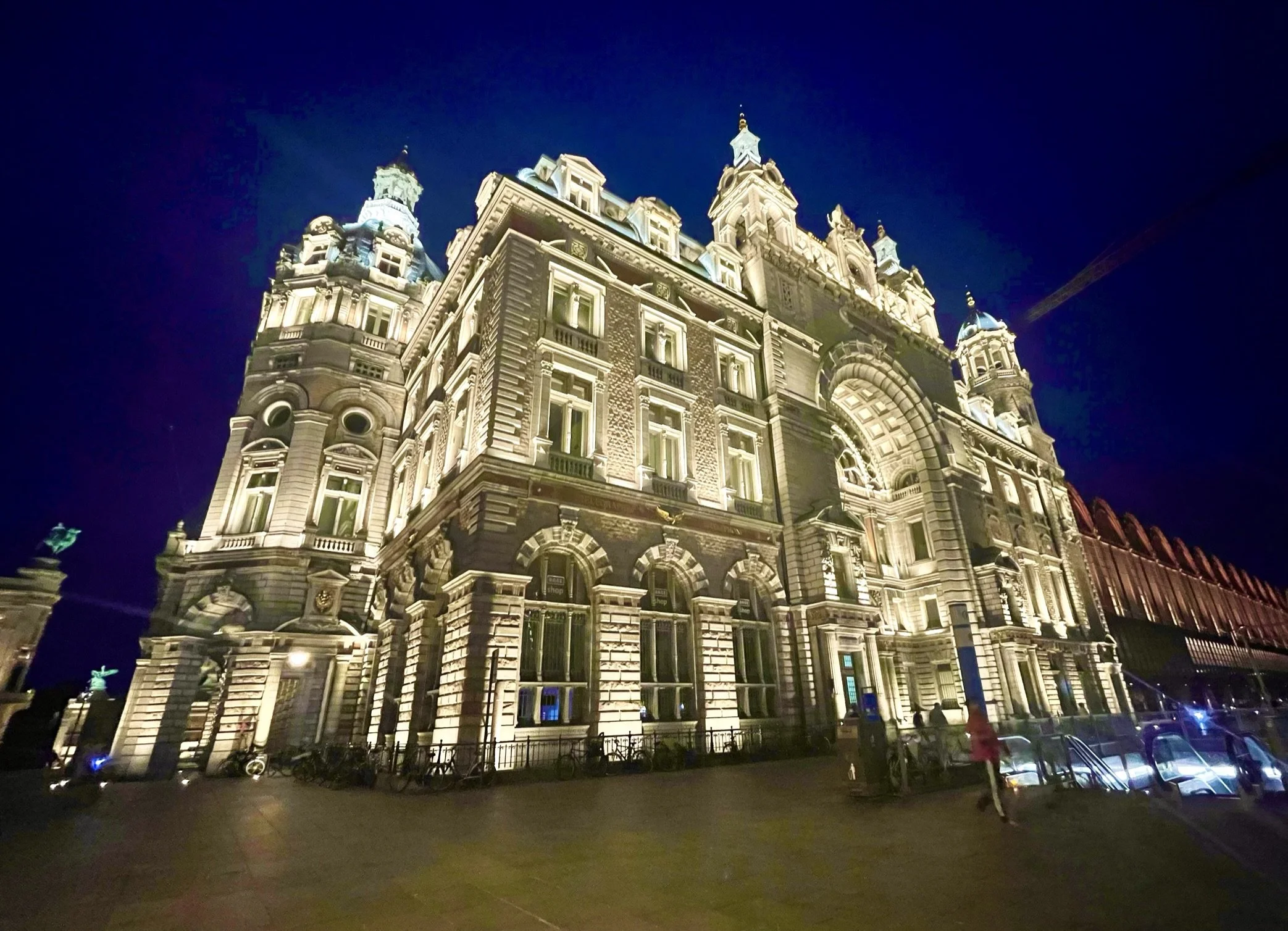 Işıklandırılmış Anwers Gar binası istediğim birkaç fotoğrafı çekmem için beni bekliyor (Arda’nın benim SLR fotoğraf makineme el koyduğuna biraz hayıflanıyorum şimdi).