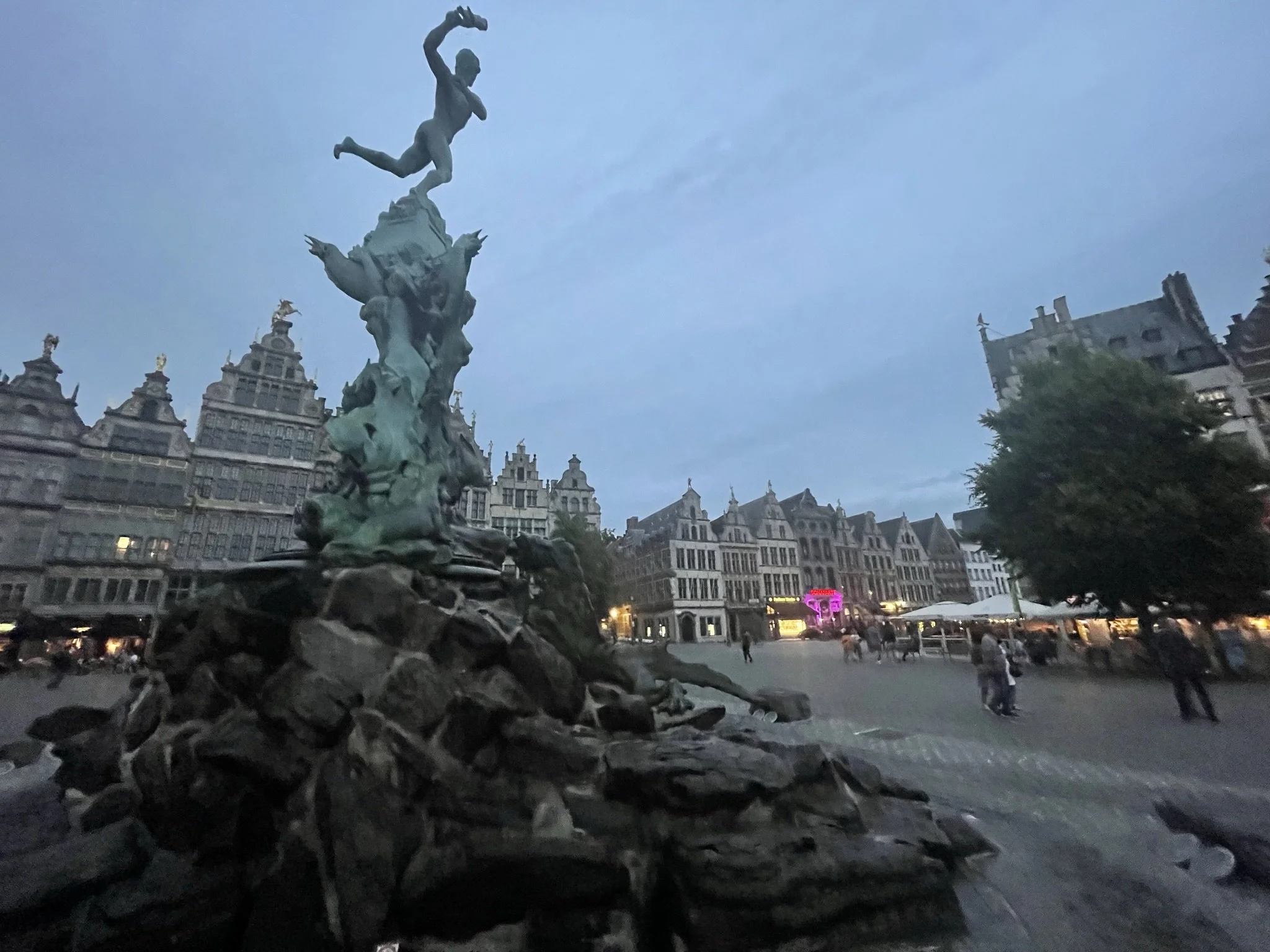 Meydanın hemen ortasında bulunan Broba Çeşmesi, Brabo destanı, isteksiz geçiş ücreti ödeyenlerin elini kesip Scheldt'e atan dev Druon Antigoon hakkında. Ancak Brabo devi öldürüyor ve karşılığında nehre attığı kendi elini kesiyor. Brabo elini şehre doğru atıyormuş gibi görünüyor. Bu destanın birkaç versiyonu var. Birinde Brabo elini nehirden uzaklaştırıyor ve şöyle diyor: "Elin düştüğü yere bir şehir inşa edeceğim: El Atma". Dolayısıyla bu, Brabo'nun elini fıskiyeye attığı yöne karşılık gelir. (wikipedia.org)
