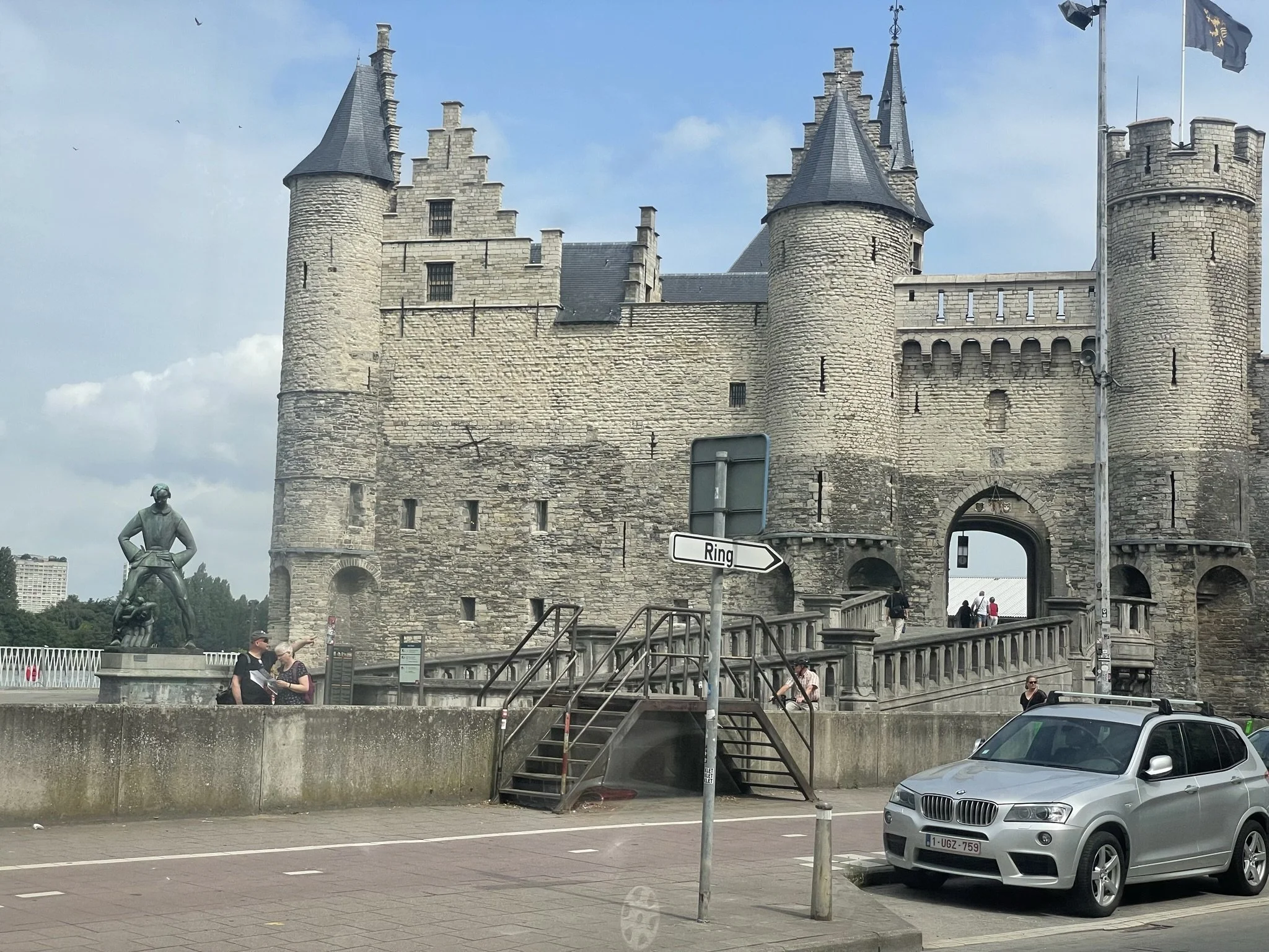 Güzel sessiz sakin bir sokak ve hoş bir grafiti sonrası Schelde Nehri’ne ulaştık. Hemen “Het Steen” kalesi önündeyiz.