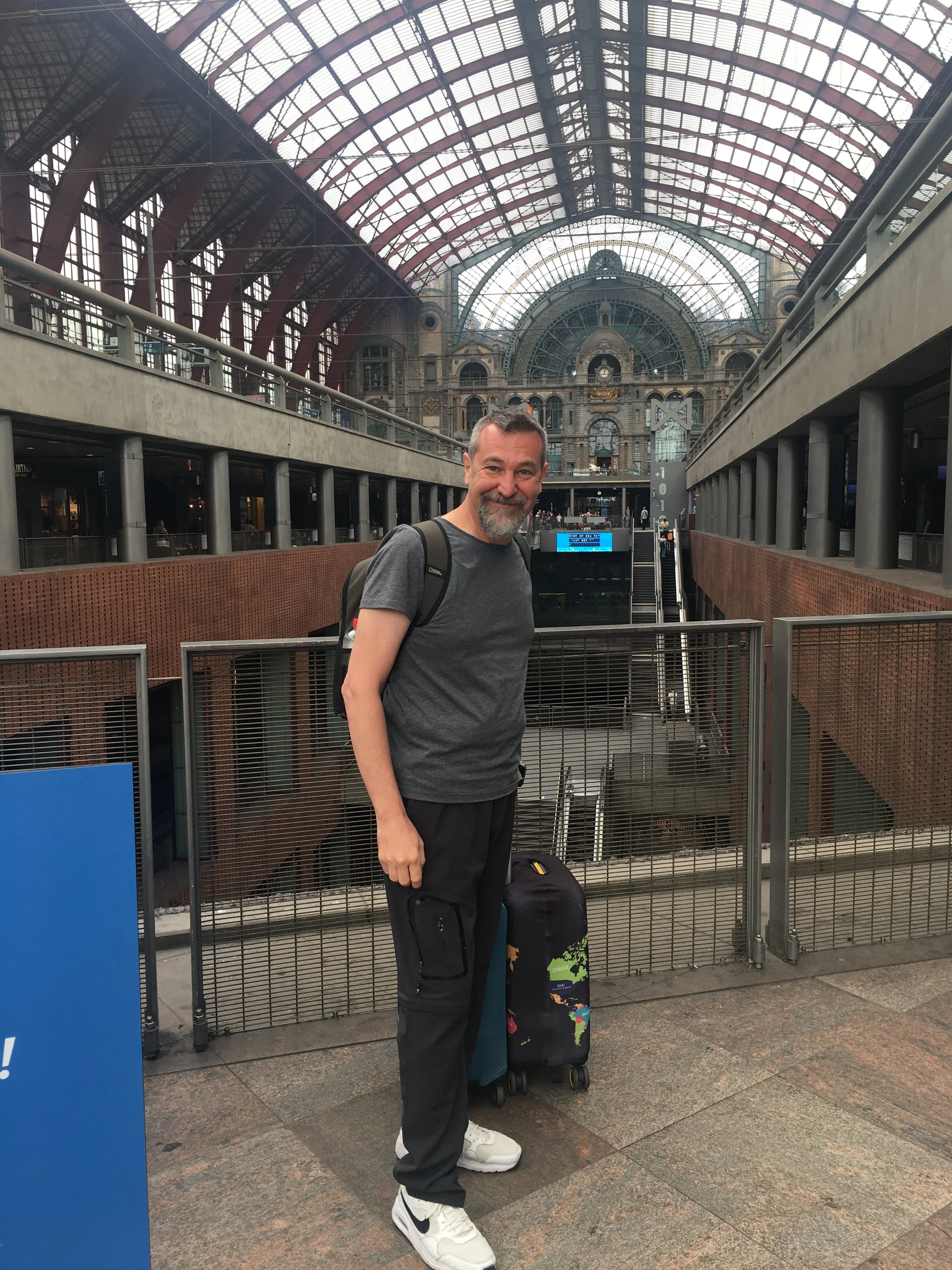 Bu defa da henüz açılmadığı için gezemedik. Tren istasyonuna vardığımızda, otomatlardan Antwerp biletlerimiz aldık. Otelimizde bugünkü kahvaltı menümüz olan kruvasan ve çörekleri almış, çantamıza atmıştık. Tren yolculuğu kısa, sadece 30 dakika kadar sürüyor. Hem etrafı izlemeyi hem kahvaltımızı trende yapmanın keyfini sürelim diye düşündük.